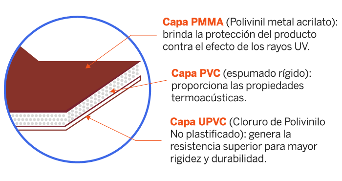 Colonial es una cubierta termoacústica con diseño arquitectónico fabricada en UPV Y PVC espumado en su interior que le da las propiedades termoacústicas.